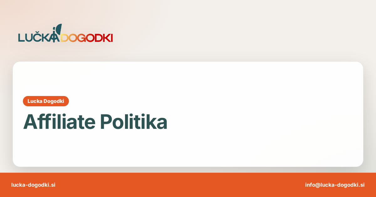 Lučka Dogodki trenutno ne sodeluje v nobenem affiliate programu. To pomeni, da na naši spletni strani ni partnerskih povezav, preko katerih bi prejemali provizijo za nakupe ali priporočila storitev drugih podjetij.