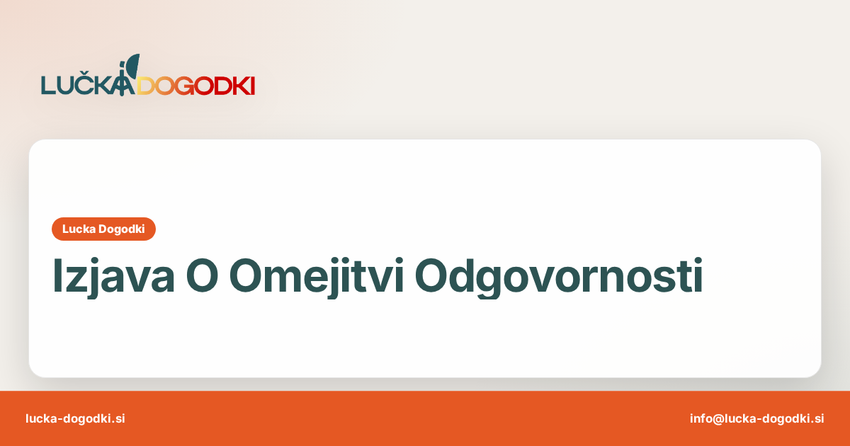 Informacije na spletni strani Lučka Dogodki so namenjene splošnemu informiranju o ponudbi, storitvah in podjetju. Čeprav si prizadevamo za točnost in ažurnost, ne dajemo izrecnih ali implicitnih jamstev glede popolnosti, zanesljivosti ali primernosti informacij za posamezen namen.