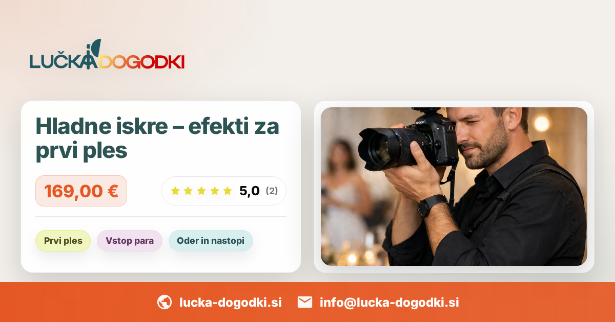 Poroka – prvi ples"Hladne iskre so bile varne in spektakularne. Tehnik je vse uskladil z DJ-jem — čista desetka!"
